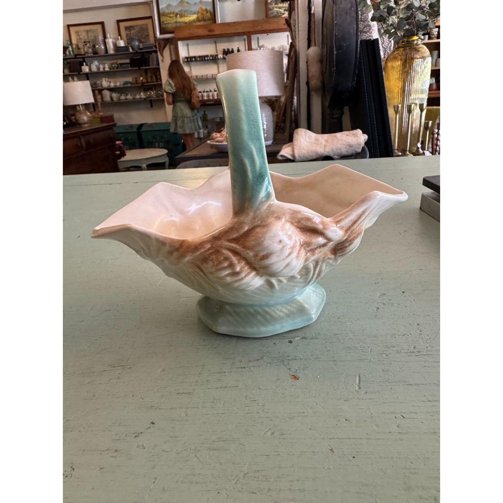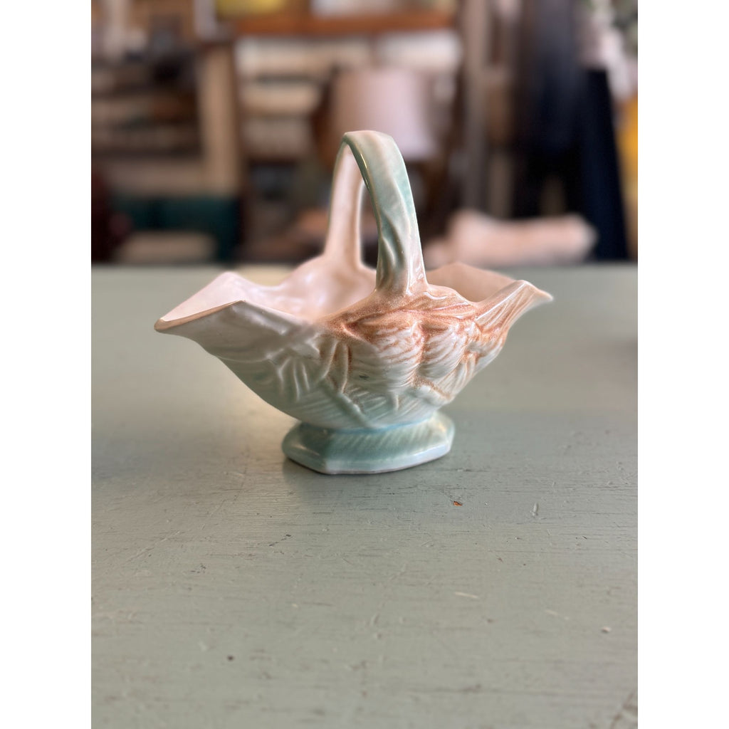McCoy Vintage Ceramic Basket with Pinecone Design Mid Century