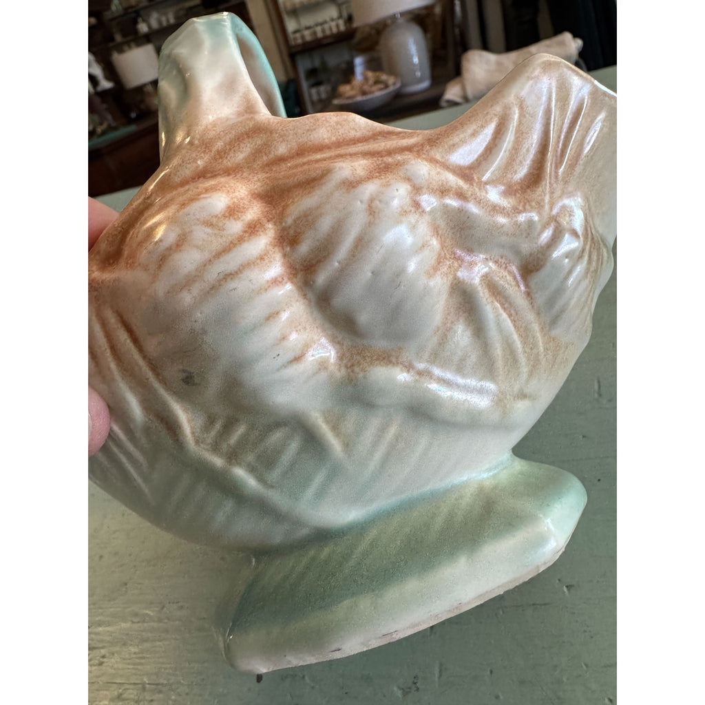 Vintage McCoy Porcelain or Ceramic Basket with Pinecone Design Mid Century c 1950s. Great tabletop vintage home decor with green, brown and cream tones.